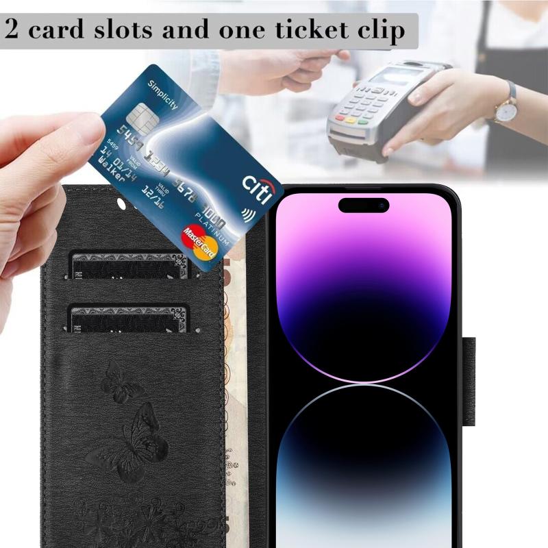 For iPhone 15 Plus Butterfly Embossed Flip Leather Phone Case(Black)