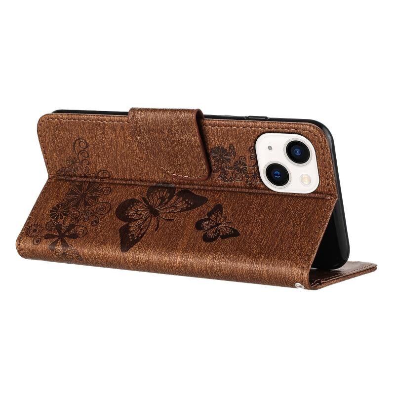 For iPhone 15 Plus Butterfly Embossed Flip Leather Phone Case(Brown)