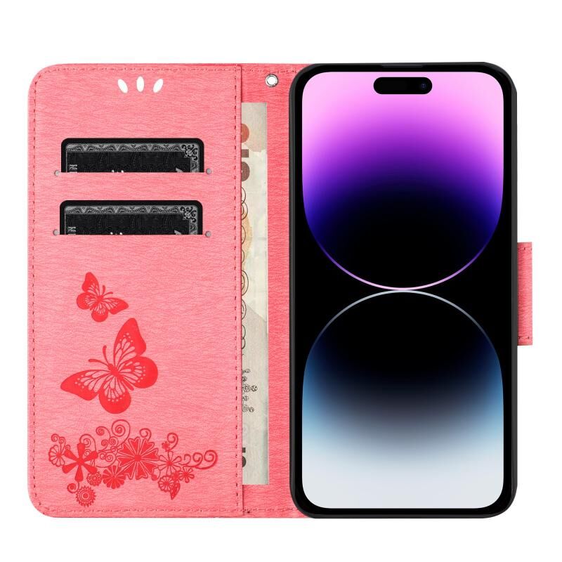 For iPhone 15 Plus Butterfly Embossed Flip Leather Phone Case(Pink)