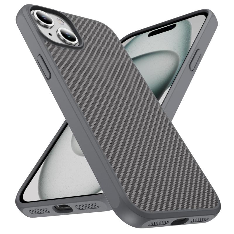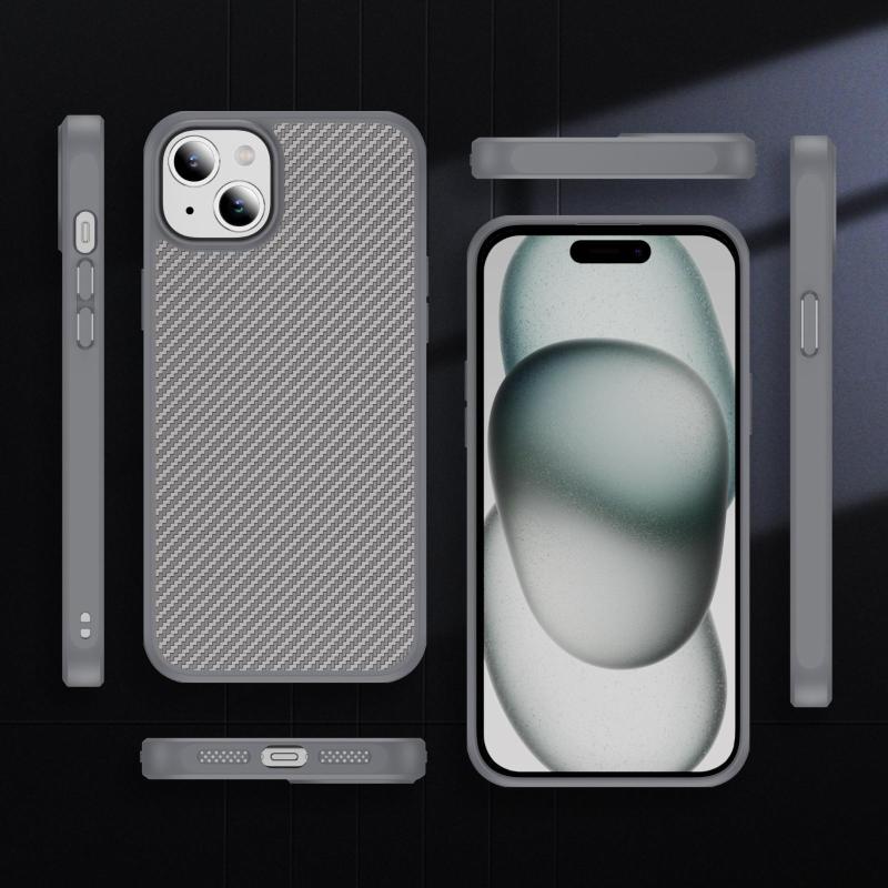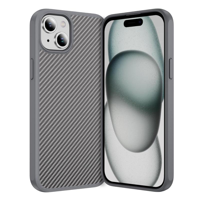 For iPhone 15 Plus Carbon Fiber Texture Skin-feel Acrylic TPU Phone Case(Grey)