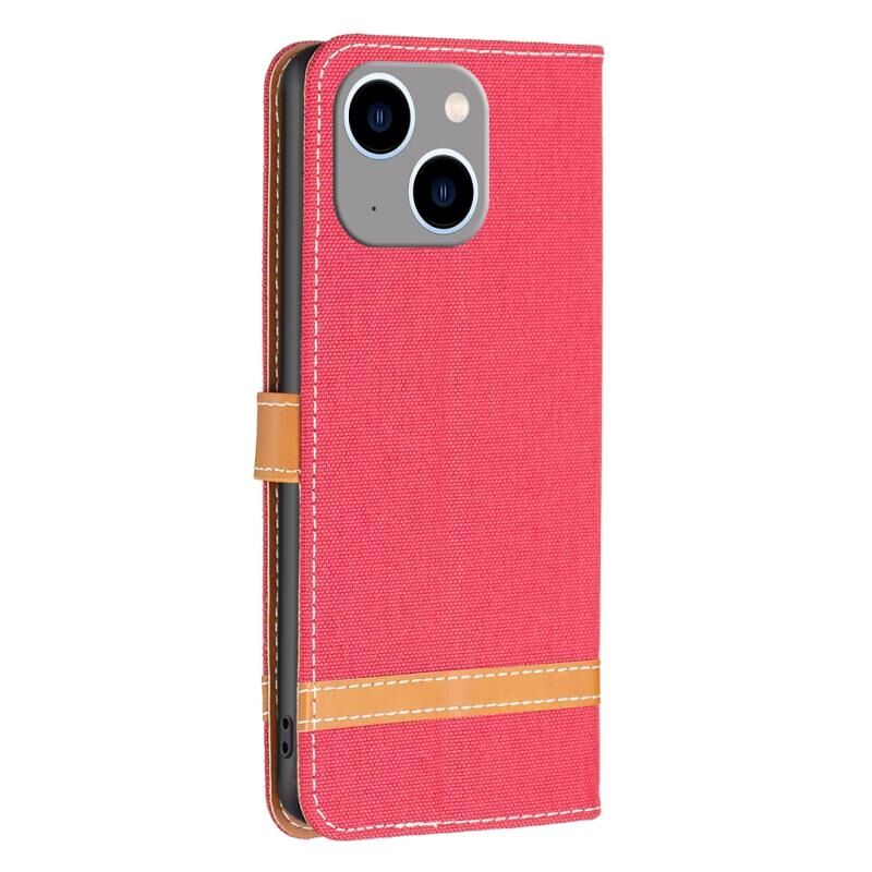 Θήκη τηλεφώνου από δέρμα με υφή τζιν και χρωματικό σχέδιο για iPhone 15 Plus (Καφέ)
