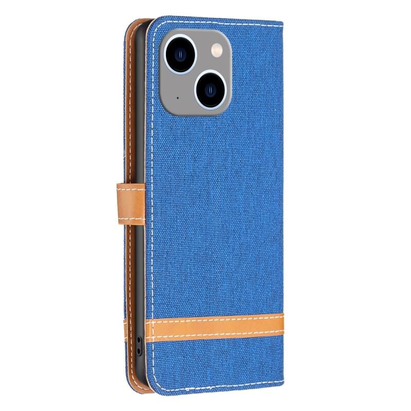 Θήκη τηλεφώνου από δέρμα με υφή τζιν και χρωματικό σχέδιο για iPhone 15 Plus (Καφέ)