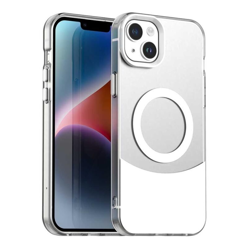 For iPhone 15 Plus Color Blocking Series MagSafe Magnetic PC Hybrid TPU Phone Case(White)