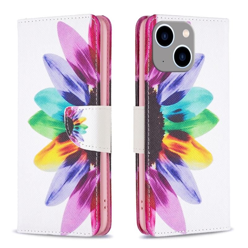 Θήκη τηλεφώνου από δέρμα με έγχρωμο σχέδιο για iPhone 15 Plus (Ηλιάνθος)
