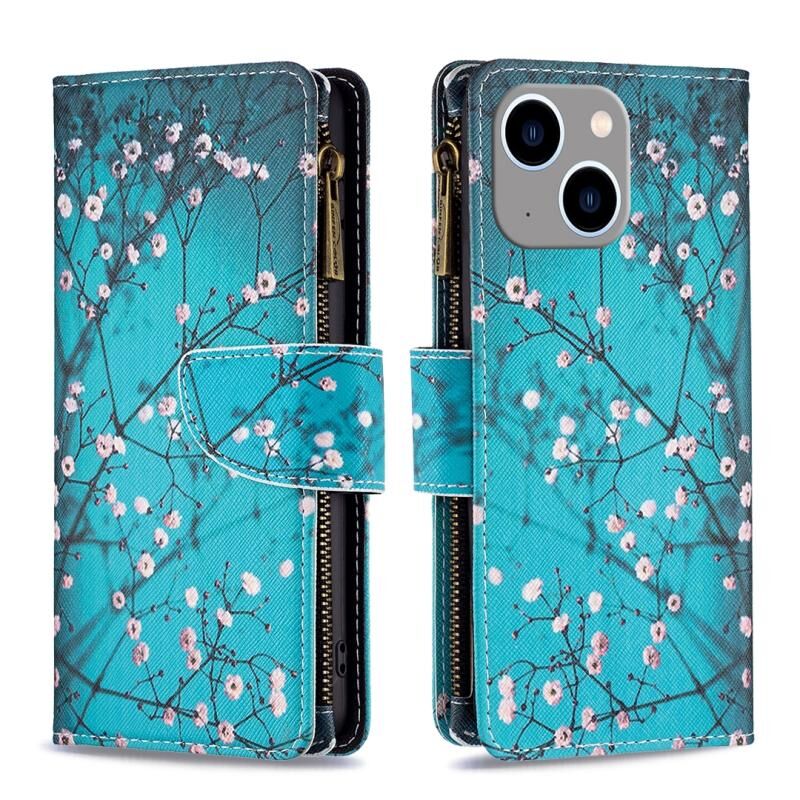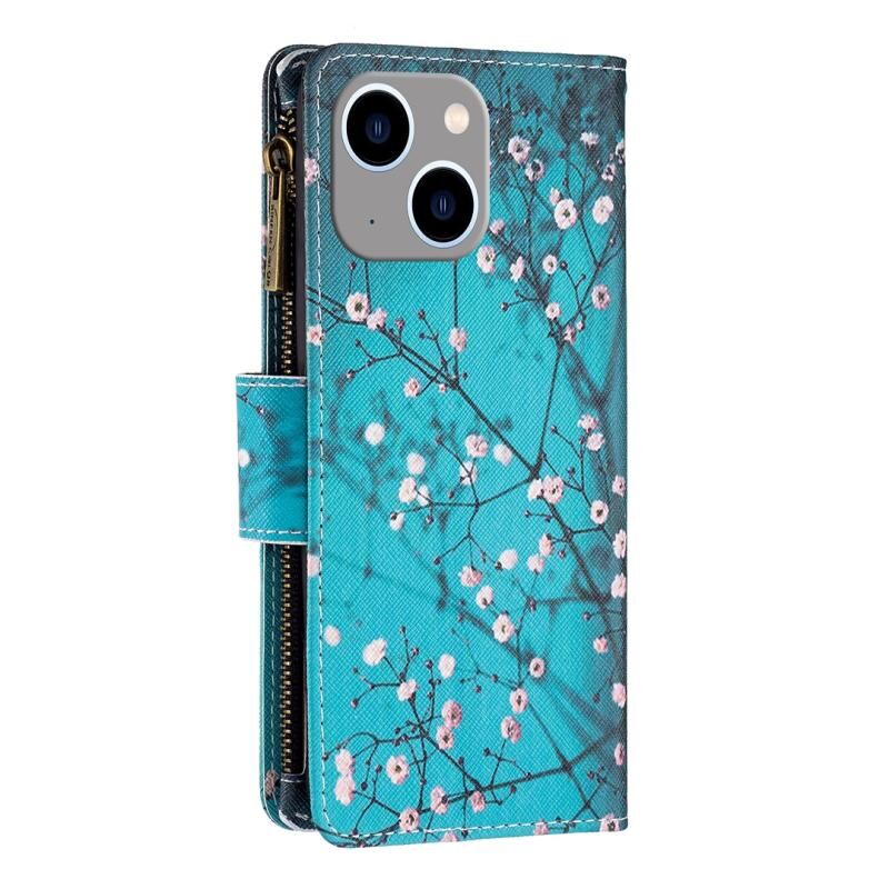 Θήκη τηλεφώνου από δέρμα με φερμουάρ και σχέδιο ζωγραφικής σε χρώματα για iPhone 15 Plus (Δαμασκηνιά)