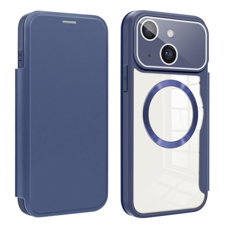 Θήκη τηλεφώνου δερμάτινη με μαγνητική προστασία MagSafe, αντι-κλοπής RFID, σε χρώμα μπλε για iPhone 15 Plus.