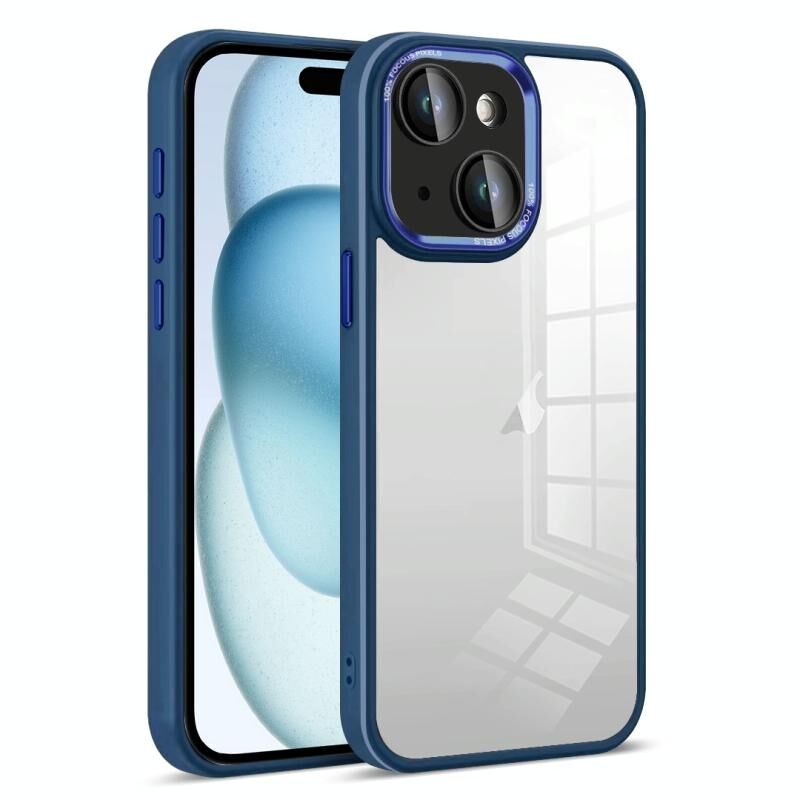 Θήκη τηλεφώνου για iPhone 15 Plus, Διαφανής με έγχρωμη προστασία φακού (Μπλε)
