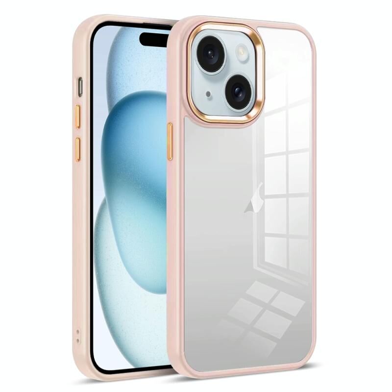 Θήκη τηλεφώνου για iPhone 15 Plus, Διαφανής με πολύχρωμη προστασία (Ροζ)