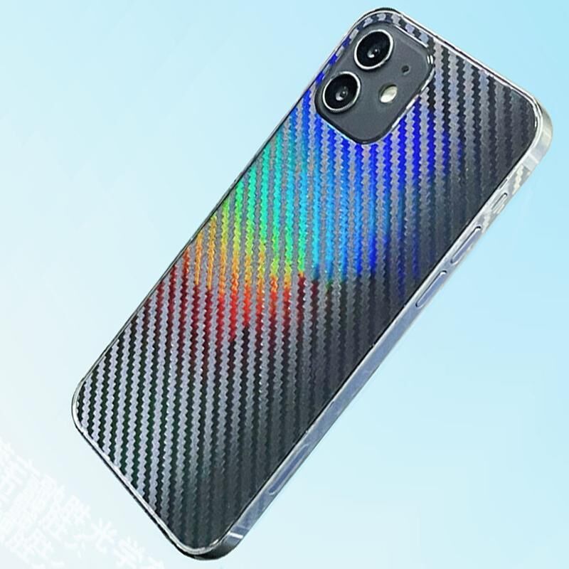 Αυτοκόλλητο για iPhone 15 Plus, πολύχρωμο, ματ (3D Laser Carbon Fiber) για την πίσω πλευρά του τηλεφώνου.