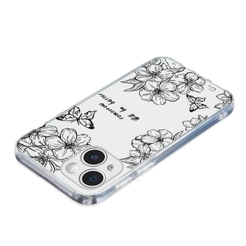 For iPhone 15 Plus Colorful Painting Pattern TPU Phone Case(Butterfly Flower)