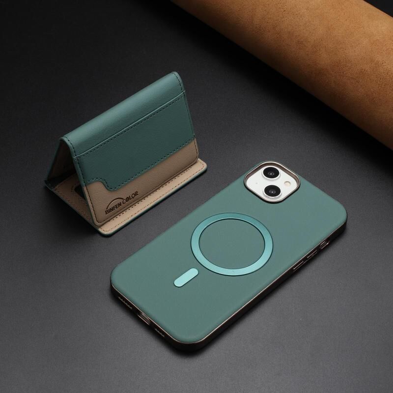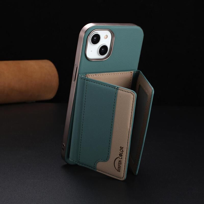 For iPhone 15 Plus Colour Matching Horizontal Magnetic Card Bag RFID MagSafe Phone Case(Green)