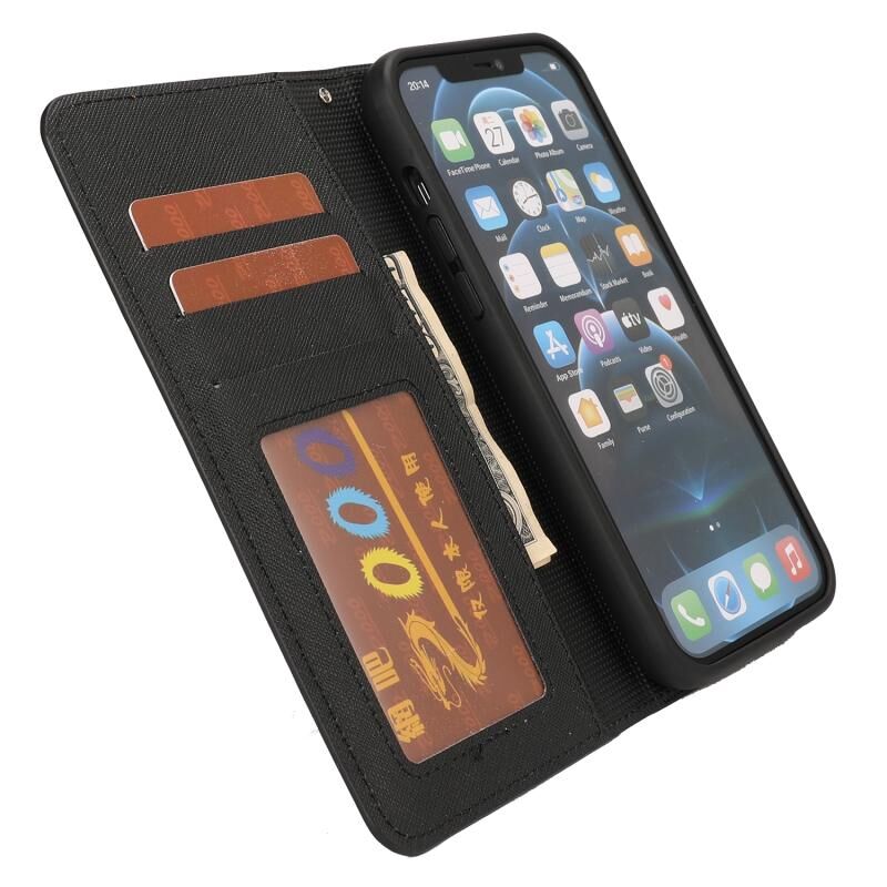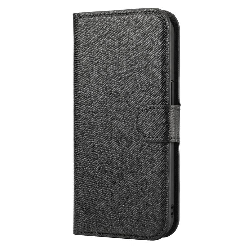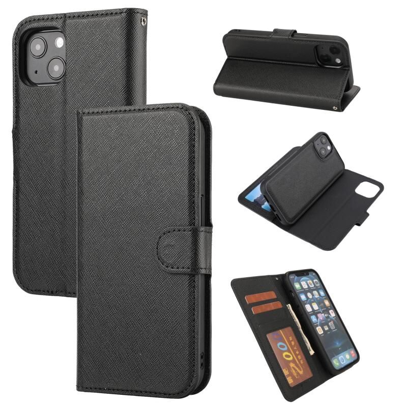 Θήκη για iPhone 15 Plus με αποσπώμενη οριζόντια κατασκευή από δέρμα PU με ανάγλυφη υφή (Μαύρο)