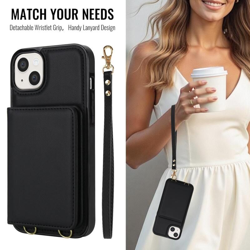 For iPhone 15 Plus Crossbody Dual-buckle Wallet RFID Back Leather Phone Case(Black)