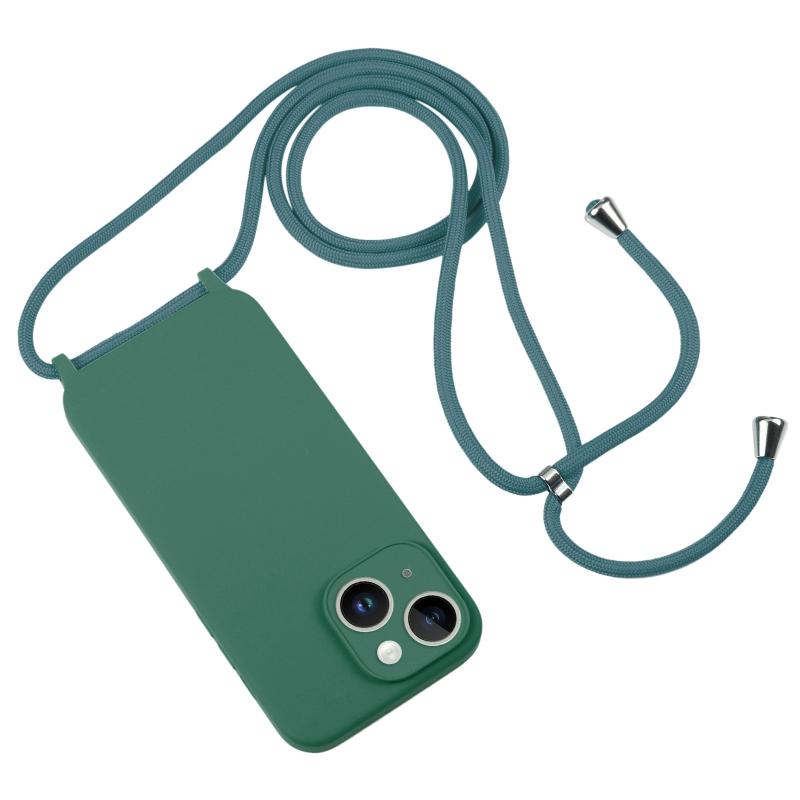 For iPhone 15 Plus Crossbody Lanyard Liquid Silicone Case(Emerald Green)