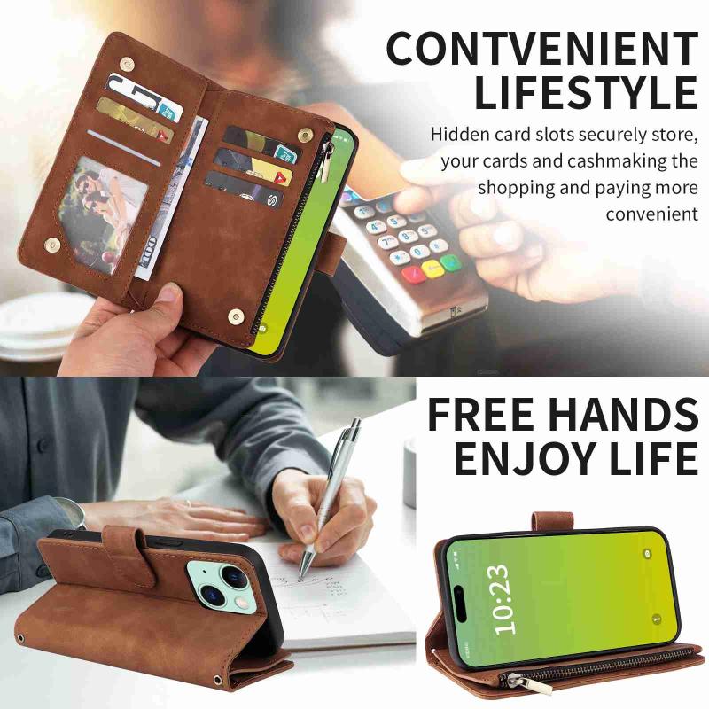 For iPhone 15 Plus Crossbody Multi-card Slot Wallet Zipper Leather Phone Case(Brown)