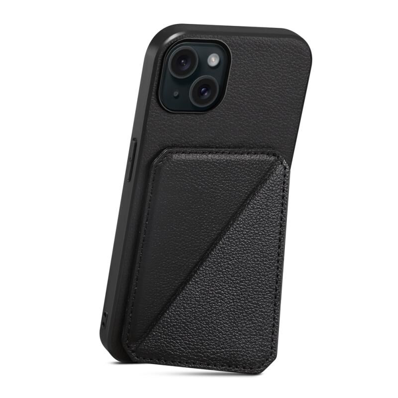 Θήκη τηλεφώνου για iPhone 15 Plus D04 με υφή μοσχαριού, διπλή υποδοχή κάρτας (Μαύρο)