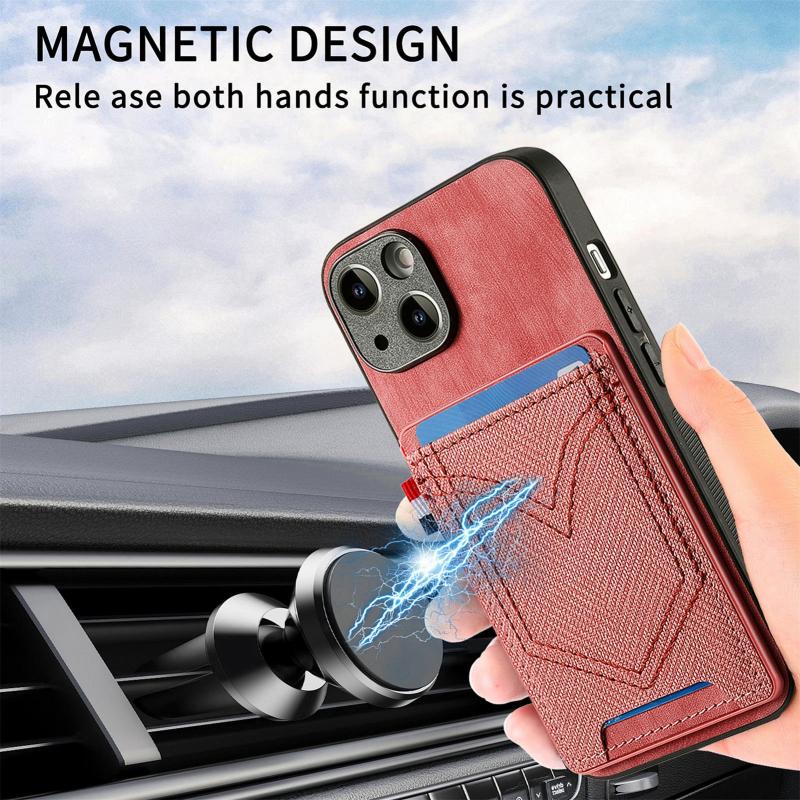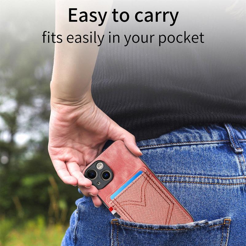 For iPhone 15 Plus Denim Texture Leather Skin Phone Case with Card Slot(Pink)
