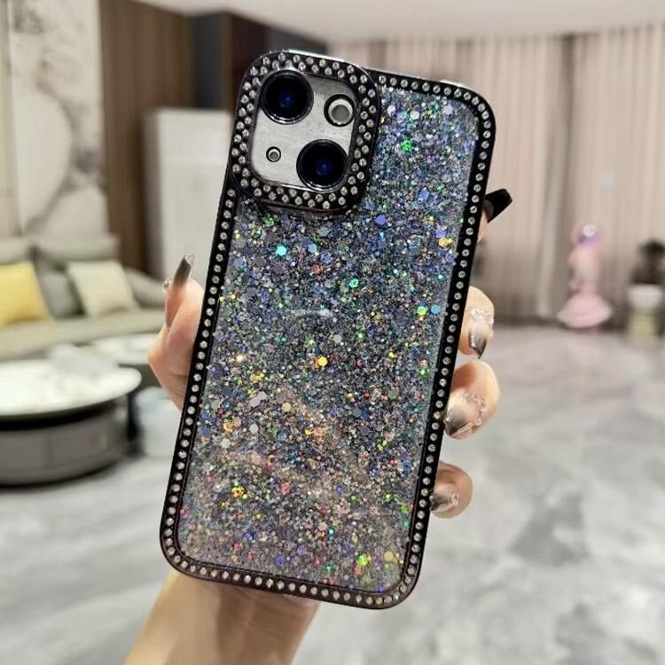 Θήκη τηλεφώνου TPU με λάμψη διαμαντιών και γκλίτερ για iPhone 15 Plus (Μαύρο)