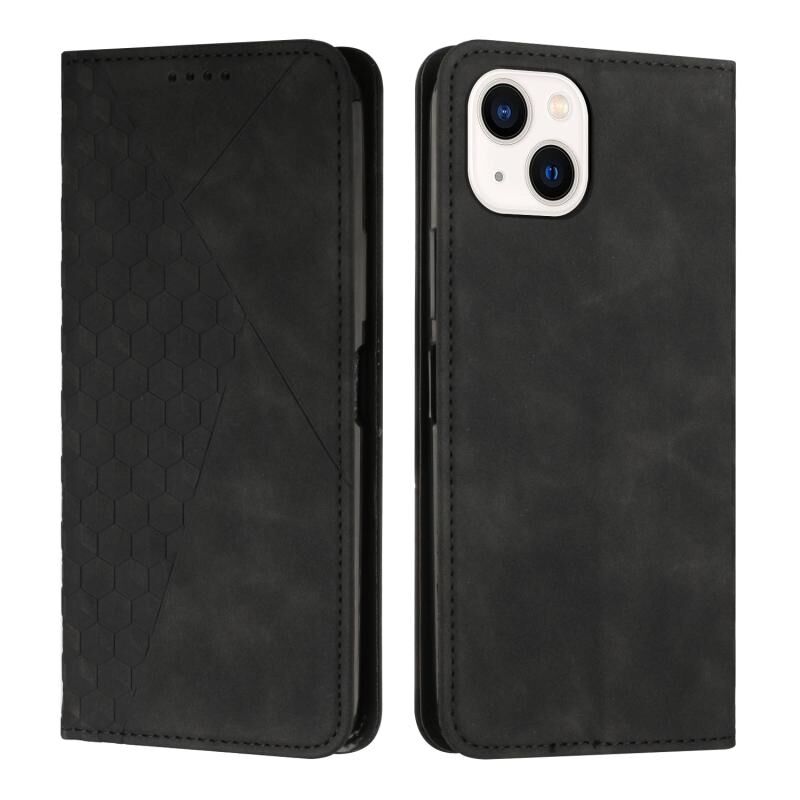 Θήκη τηλεφώνου μαγνητικού δέρματος με αίσθηση δέρματος και διαμαντένιας ραφής για iPhone 15 Plus (Μαύρο)