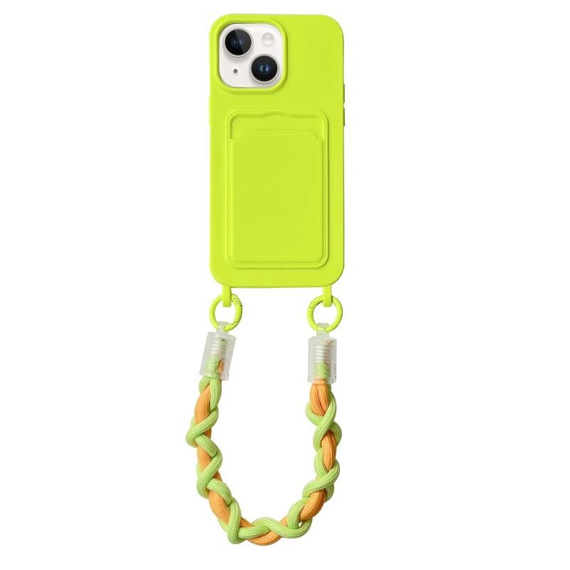 For iPhone 15 Plus Dopamine Card Slot Phone Case with Lanyard(Fluorescent Green)