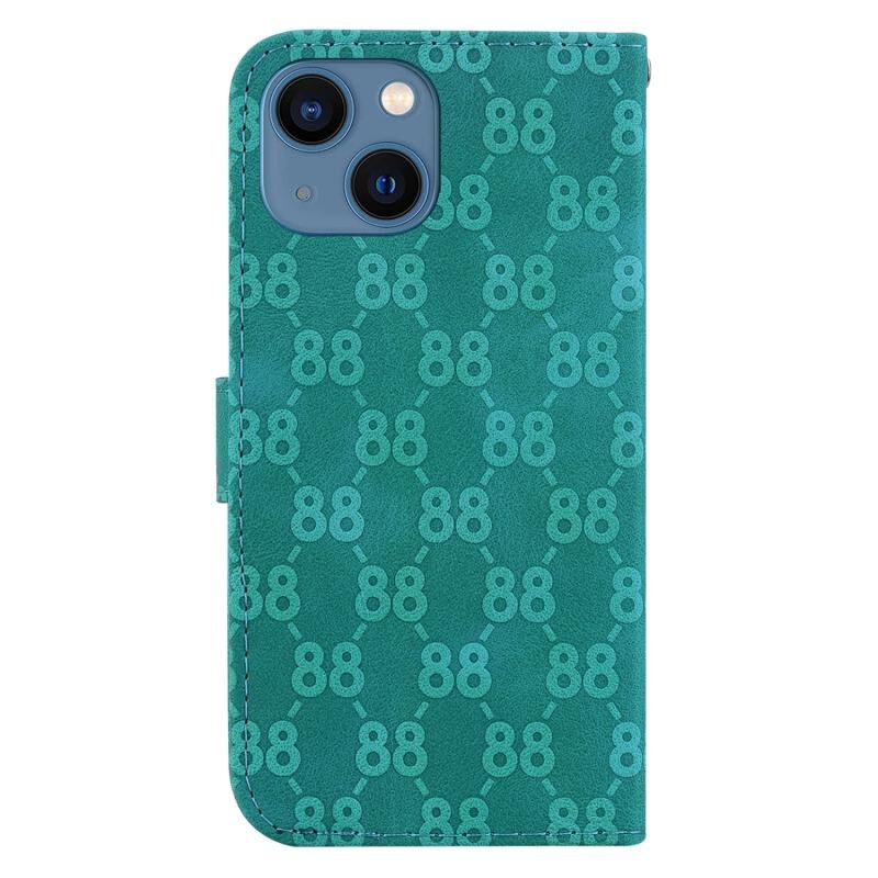 Θήκη τηλεφώνου από δέρμα με ανάγλυφο διπλό σχέδιο σε σχήμα 8 για iPhone 15 Plus (Πράσινο)