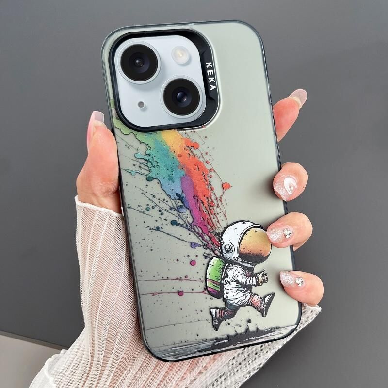 Θήκη τηλεφώνου για iPhone 15 Plus, Διπλής όψης IMD, TPU + PC με σχέδια Animal Graffiti (Αστροναύτες που τρέχουν)