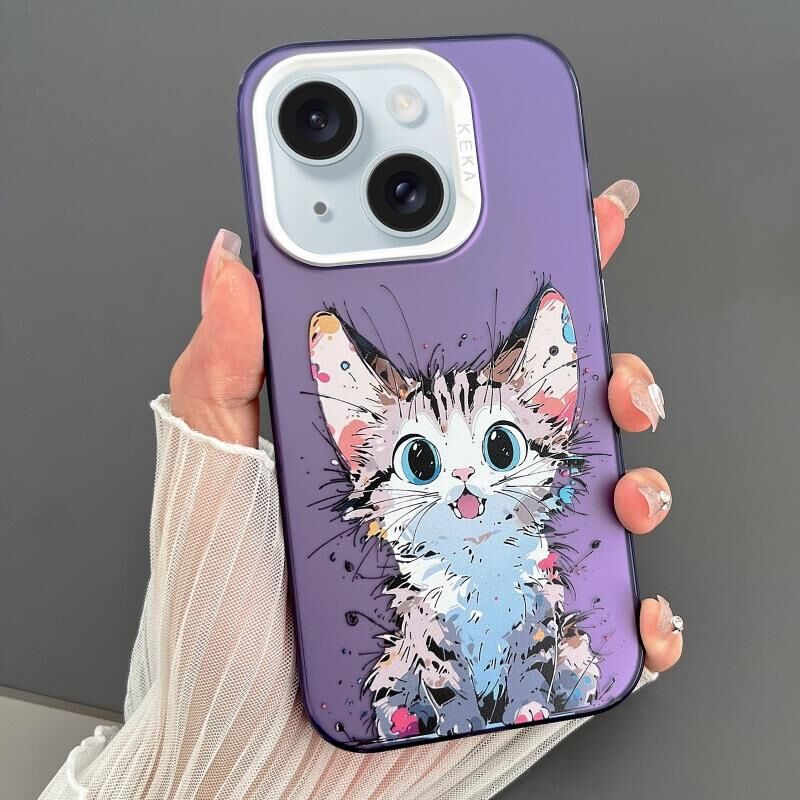 Θήκη τηλεφώνου για iPhone 15 Plus, Διπλής Όψης IMD με σχέδια Animal Graffiti από TPU + PC (Έκπληκτος Γάτος)