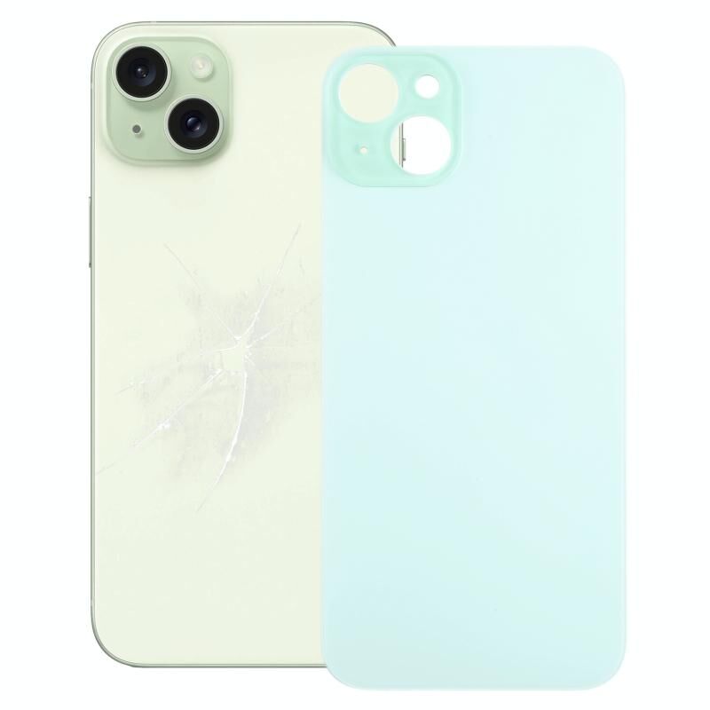 For iPhone 15 Plus Easy Replacement Big Camera Hole Glass Back Battery Cover(Green)
