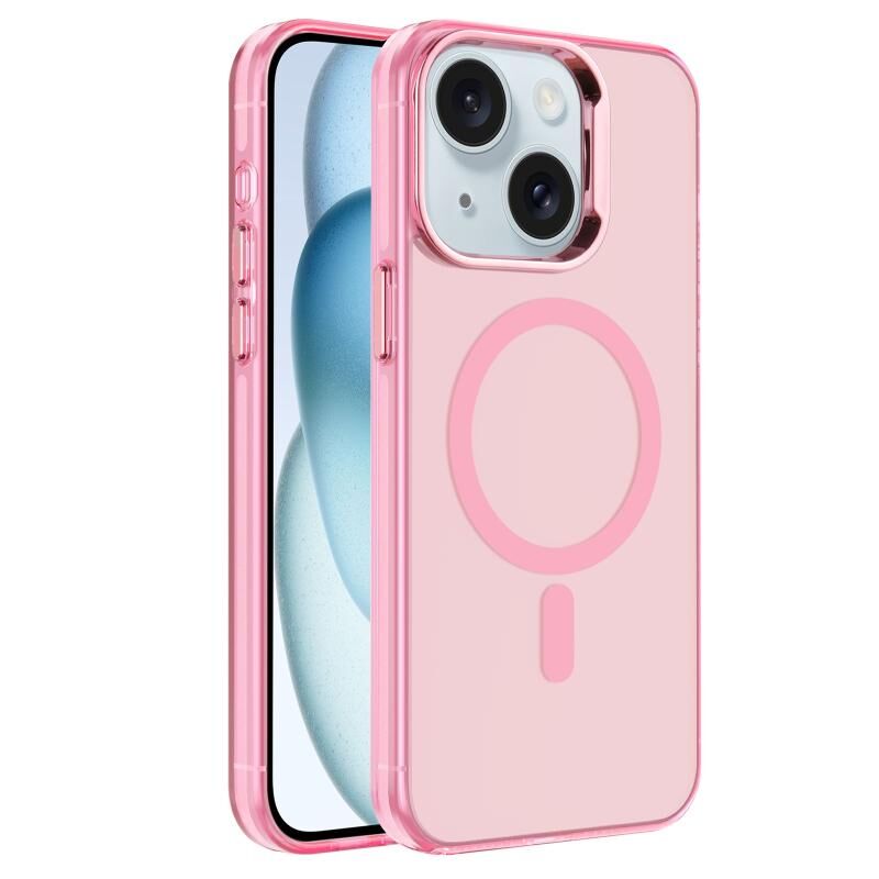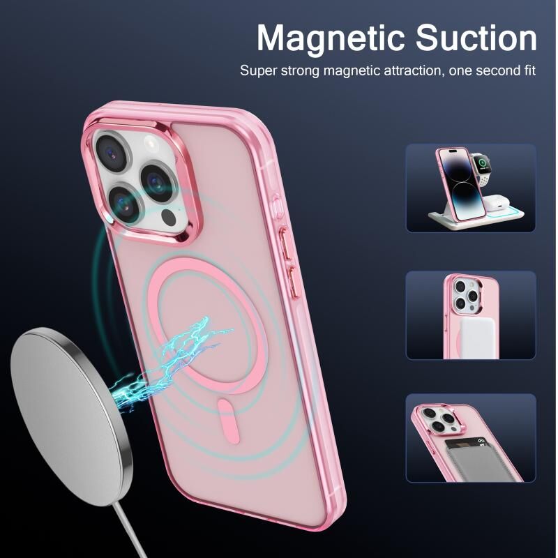 For iPhone 15 Plus Electroplated IMD Magsafe PC Hybrid TPU Phone Case(Pink)