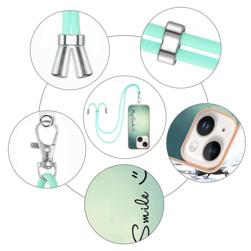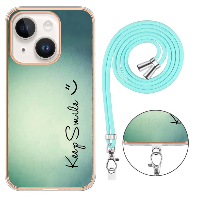 For iPhone 15 Plus Electroplating Dual-side IMD Phone Case with Lanyard(Smile)