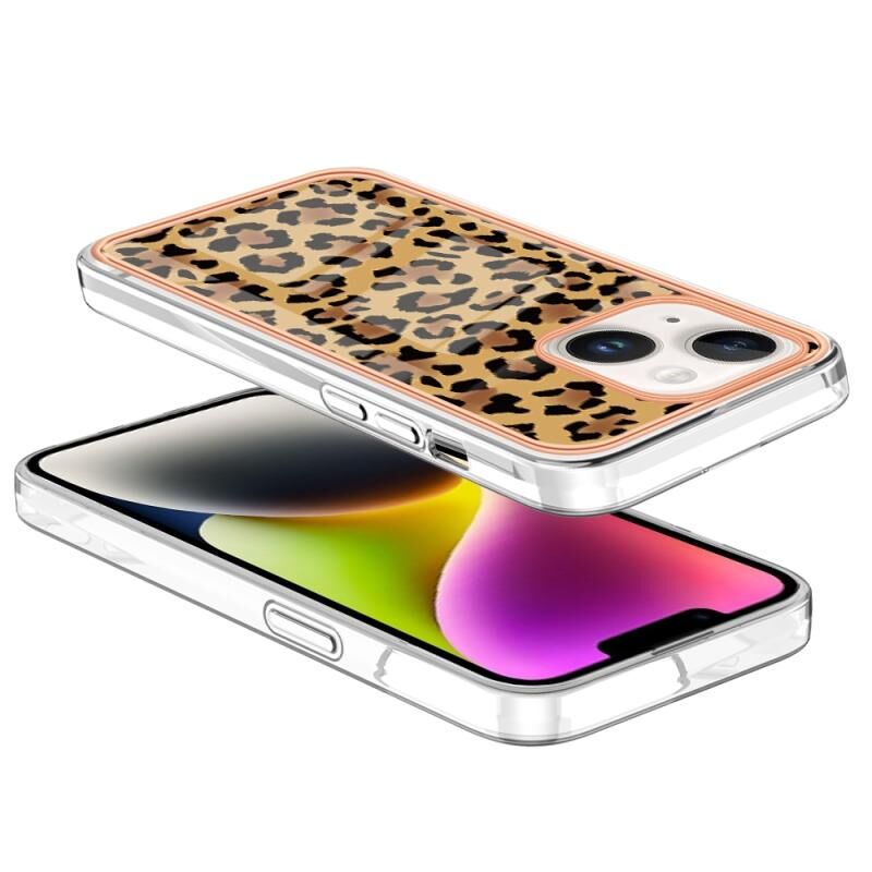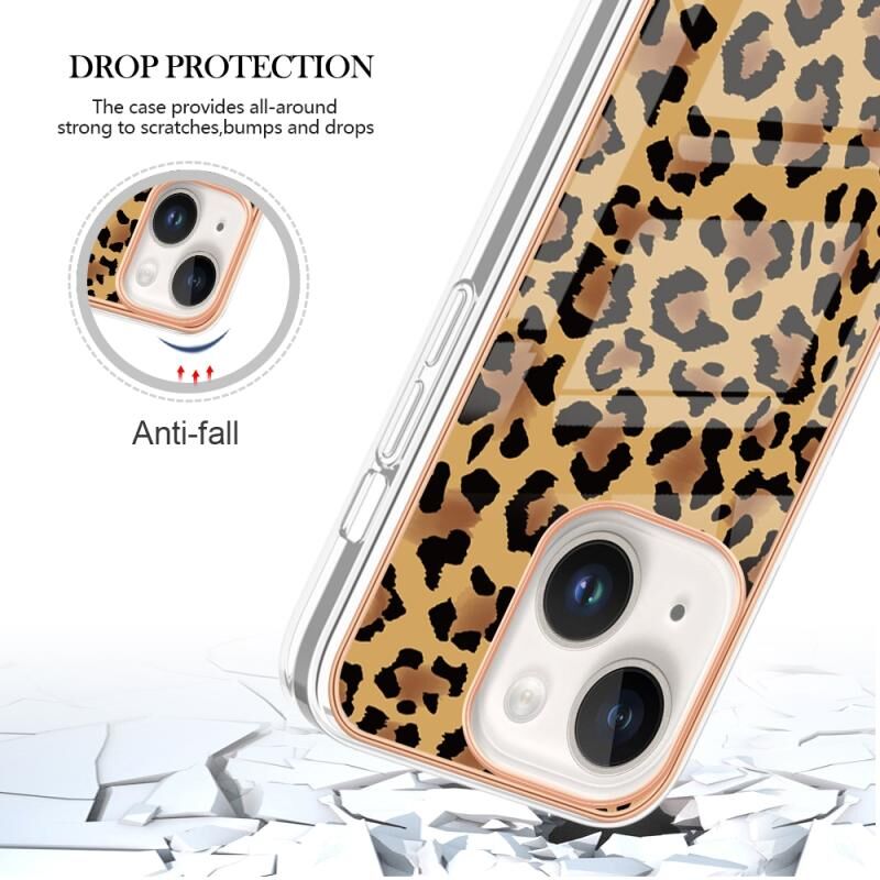 Θήκη τηλεφώνου για iPhone 15 Plus με ηλεκτρολυτική μαρμάρινη επένδυση IMD διπλής όψης (εκτύπωση λεοπάρδαλης)