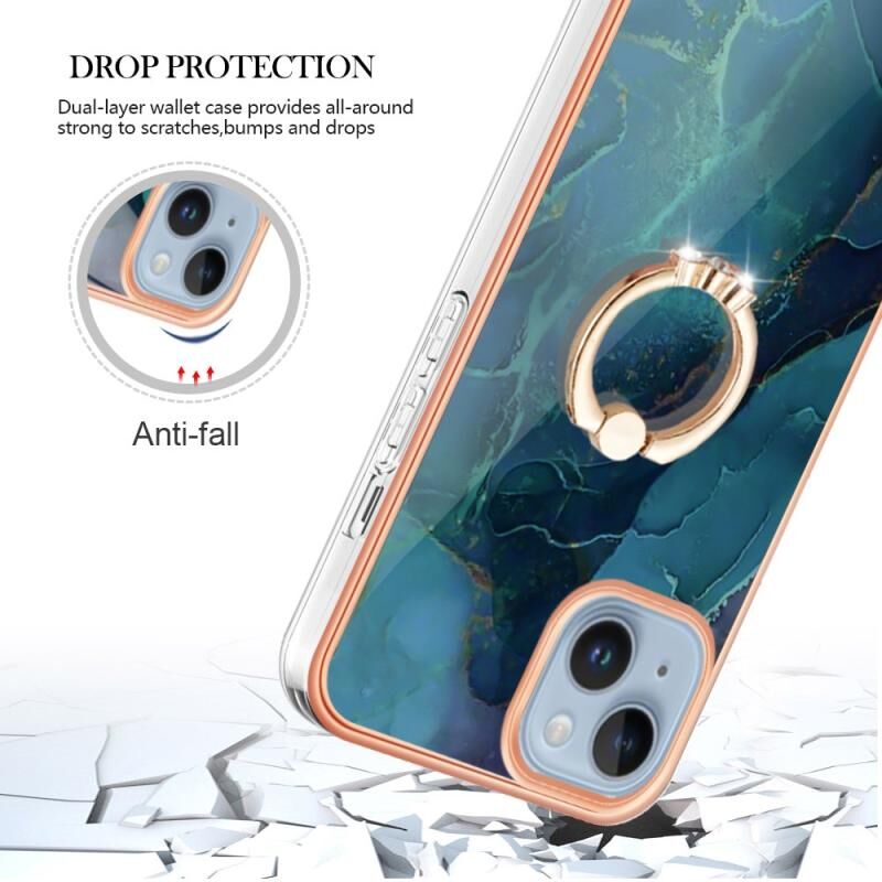 Θήκη τηλεφώνου για iPhone 15 Plus με ηλεκτρολυτική μαρμάρινη επένδυση IMD διπλής όψης με δακτύλιο (Πράσινο 017)
