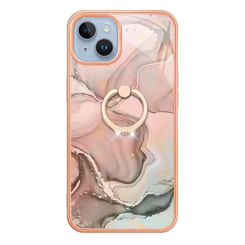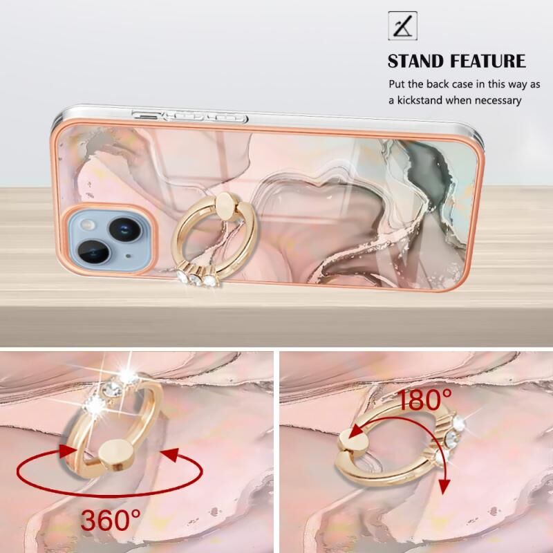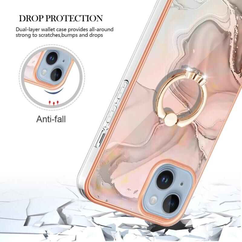 Θήκη τηλεφώνου για iPhone 15 Plus με ηλεκτρολυτική μαρμάρινη επένδυση IMD διπλής όψης με δακτύλιο (Ροζ Χρυσός 015)