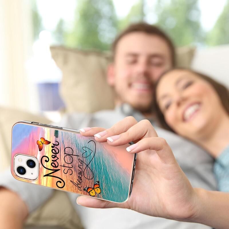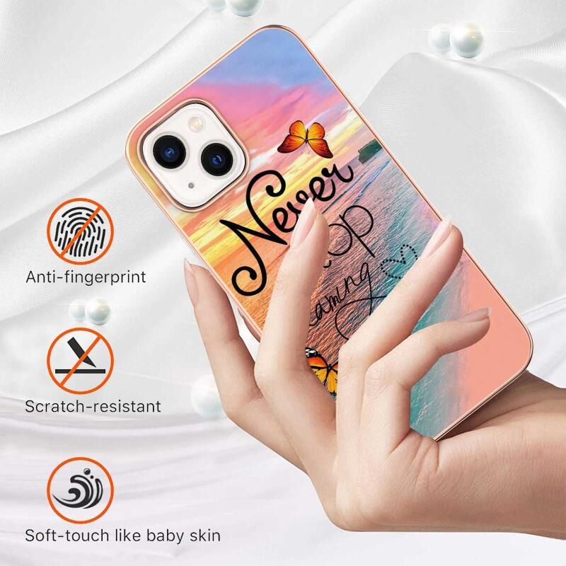 Θήκη για iPhone 15 Plus με σχέδιο επιμετάλλωσης IMD TPU αντικραδασμική (Πεταλούδα που κυνηγάει όνειρα)