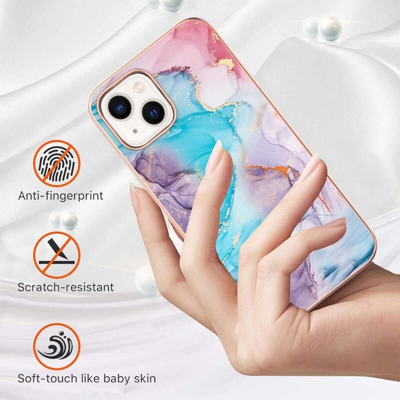 Θήκη για iPhone 15 Plus με σχέδιο ηλεκτρολυτικής επιμετάλλωσης IMD TPU αντικραδασμική (Ροζ Λέπια)