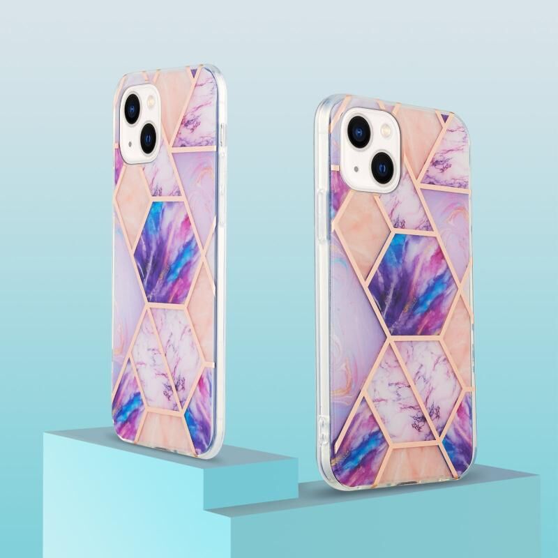 Θήκη κινητού τηλεφώνου για iPhone 15 Plus με ηλεκτρολυτική επιμετάλλωση, συνδυασμό μαρμάρου και λουλουδιών, διπλής όψης IMD TPU αντικραδασμική (ανοιχτό μωβ)
