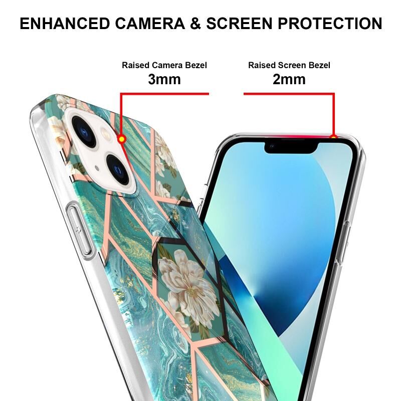 Θήκη για iPhone 15 Plus με ηλεκτρολυτική επιμετάλλωση, συνδυασμό μαρμάρου και λουλουδιών, από TPU, αντικραδασμική (Μαύρο Λουλούδι)