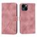 For iPhone 15 Plus Embossed Line Leather Phone Case with Lanyard(Pink)