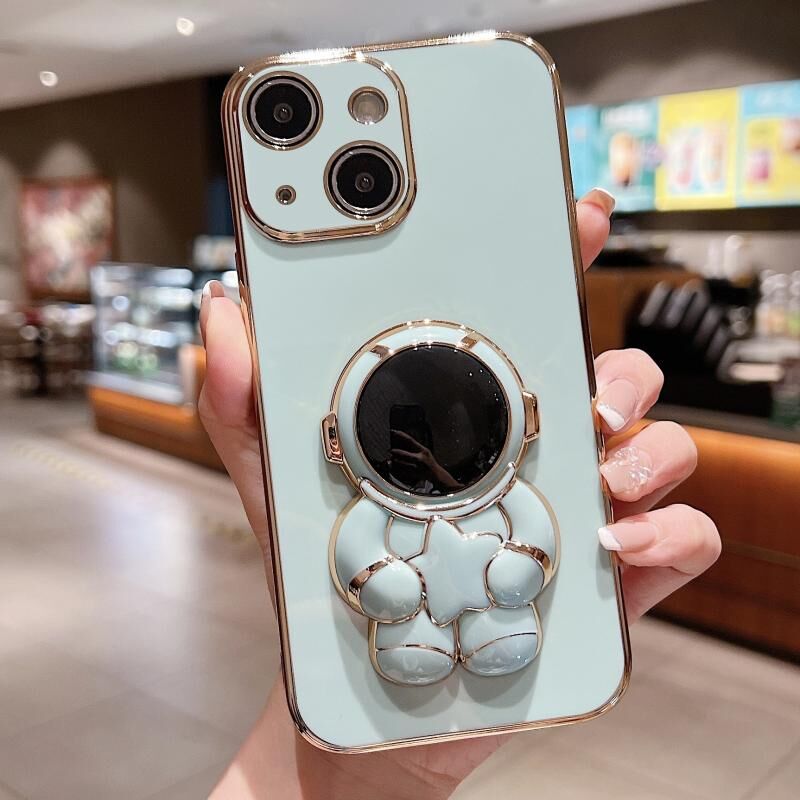 Θήκη τηλεφώνου για iPhone 15 Plus με ηλεκτρολυτική επίστρωση, σχέδιο αστροναύτη και αστέρια (Μωβ)