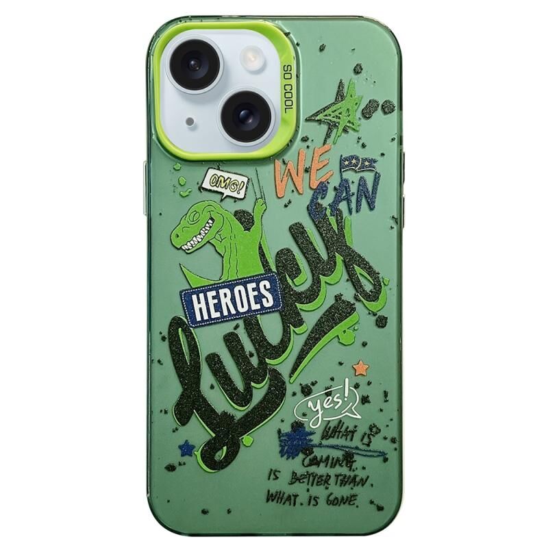 Θήκη τηλεφώνου για iPhone 15 Plus, πλαστική πολυανθρακική (PC) με αγγλικούς χαρακτήρες (Δεινόσαυρος)