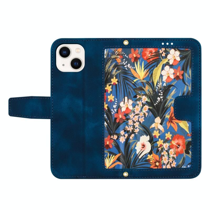 Θήκη τηλεφώνου από δέρμα με λουλουδάτο σχέδιο για iPhone 15 Plus με κορδόνι (Πράσινο)
