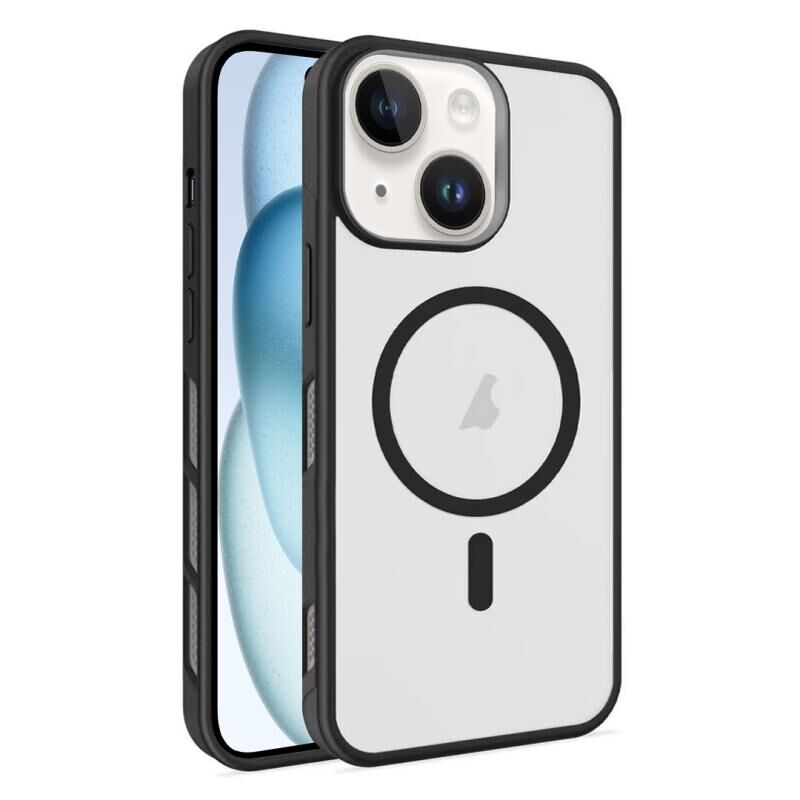 For iPhone 15 Plus Frosted Translucent Side Ice Fog Cooling MagSafe Phone Case(Black)