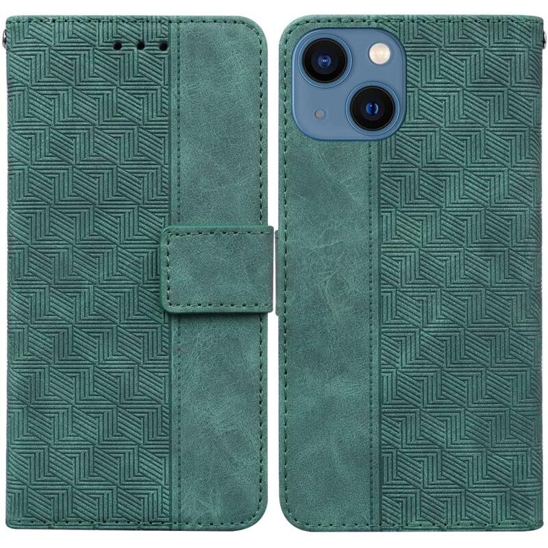 Θήκη τηλεφώνου δερμάτινη με ανάγλυφο γεωμετρικό σχέδιο για iPhone 15 Plus (πράσινο)