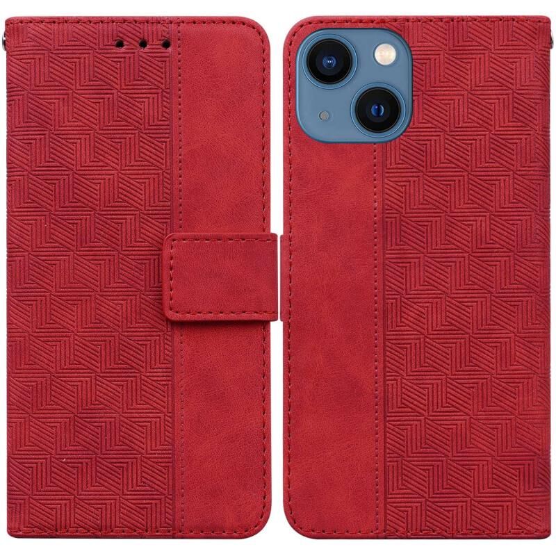 Θήκη τηλεφώνου δερμάτινη με ανάγλυφο γεωμετρικό σχέδιο για iPhone 15 Plus (Κόκκινο)