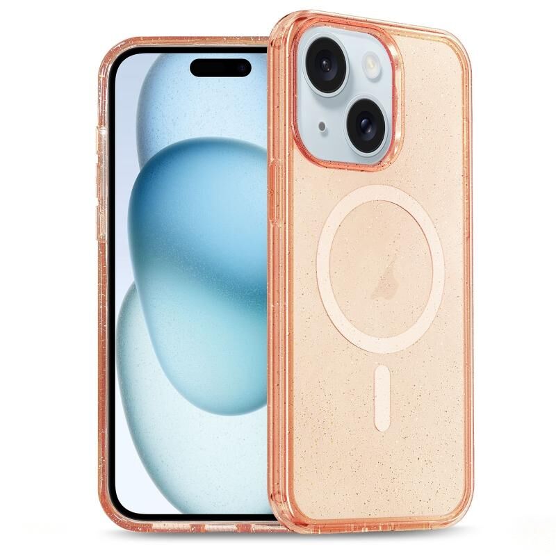 Θήκη τηλεφώνου για iPhone 15 Plus, υβριδική από TPU και PC με MagSafe και γκλίτερ σε πορτοκαλί χρώμα.