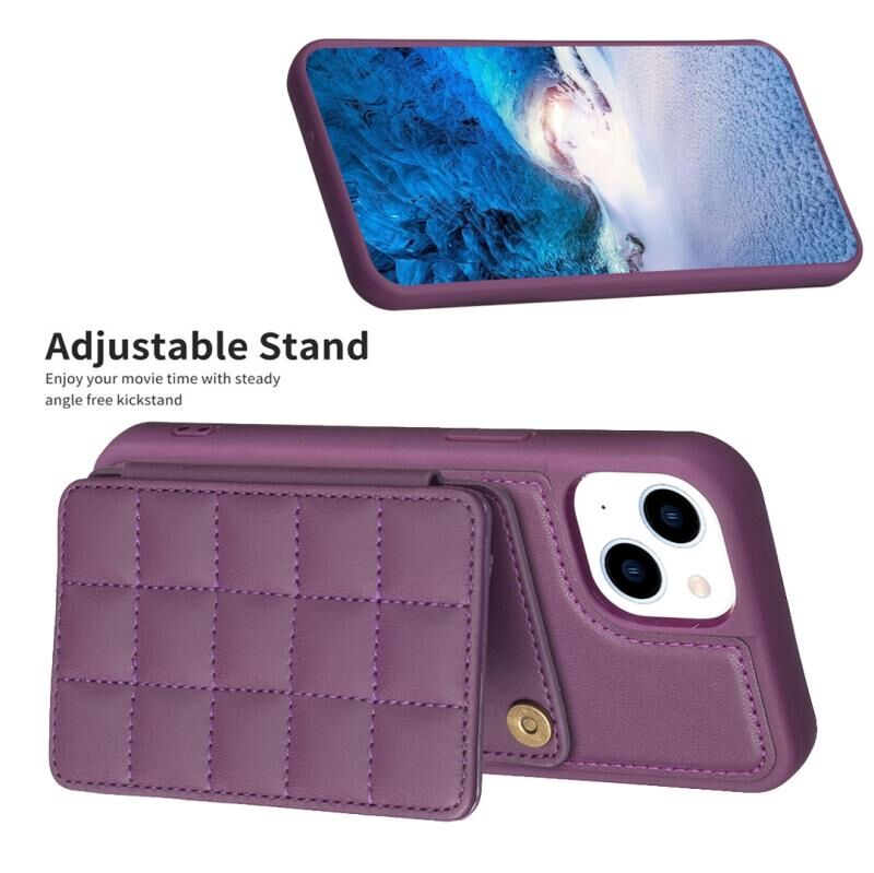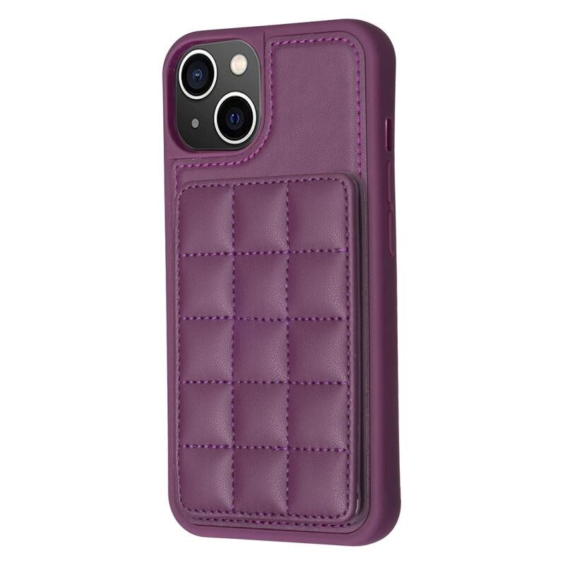 Θήκη τηλεφώνου για iPhone 15 Plus με υποδοχή κάρτας σε σχήμα πλέγματος (Σκούρο μωβ)