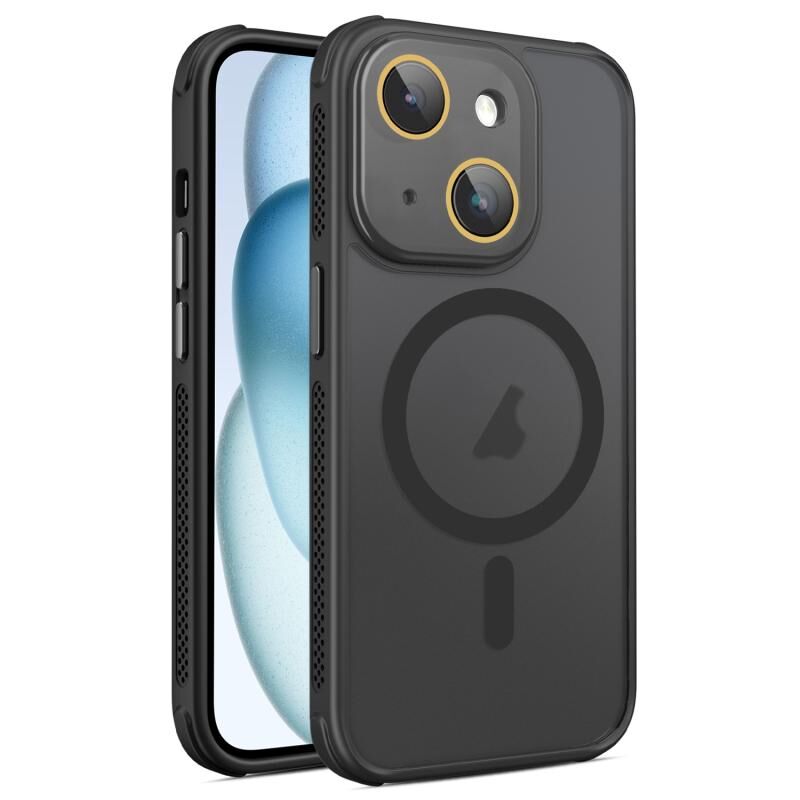 Θήκη τηλεφώνου με μαγνητική σύνδεση MagSafe, ματ υφή, με προστασία φακού για iPhone 15 Plus, με ψύξη υλικού (Μαύρο)