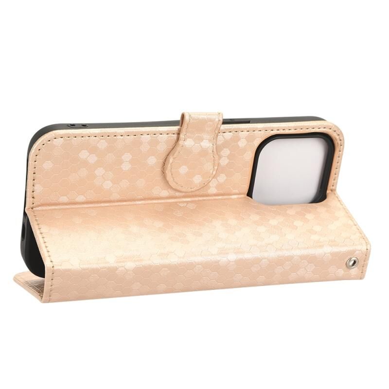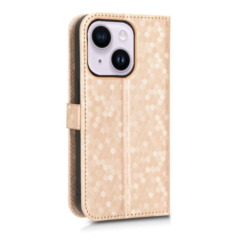 For iPhone 15 Plus Honeycomb Dot Texture Leather Phone Case(Gold)