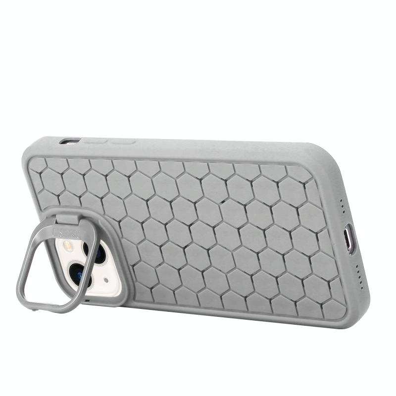 Θήκη τηλεφώνου TPU για iPhone 15 Plus με βάση φακού σε σχήμα κυψελωτού (Γκρι)