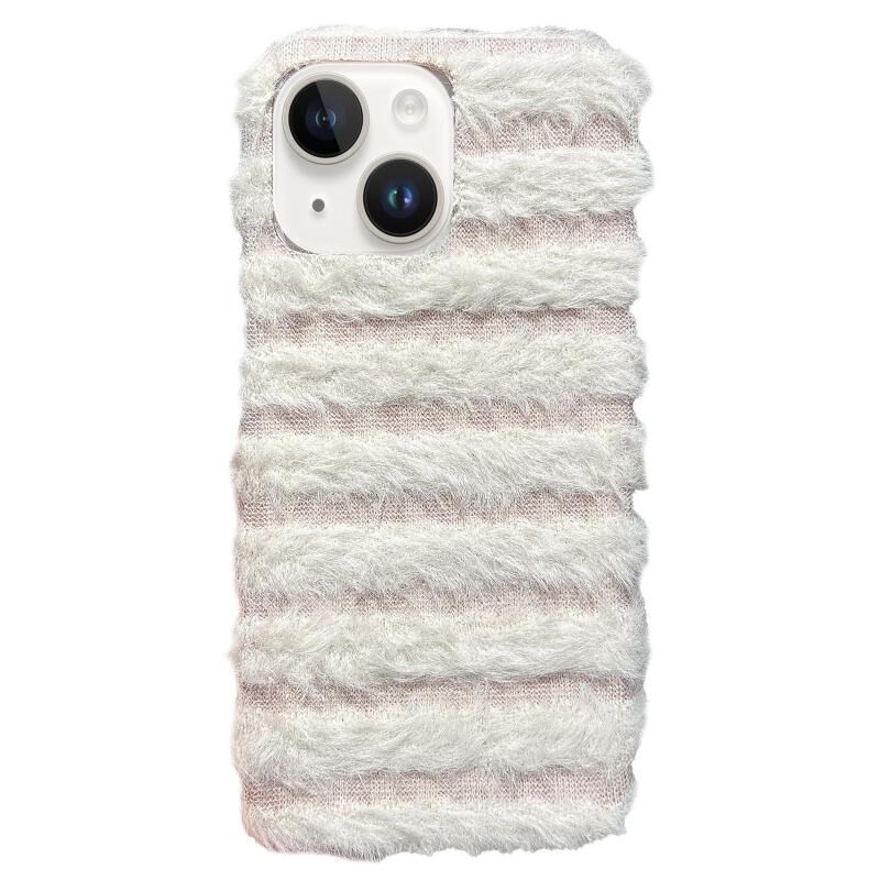 For iPhone 15 Plus Horizontal Striped Plush TPU Phone Case(Pink White)